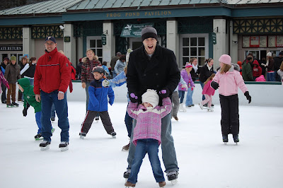 Here’s a tip: If you want to take a four-year-old and a two-year-old ice-skating at the same time, you really need four adults to assist with the process…if you don’t want to break your back, that is.